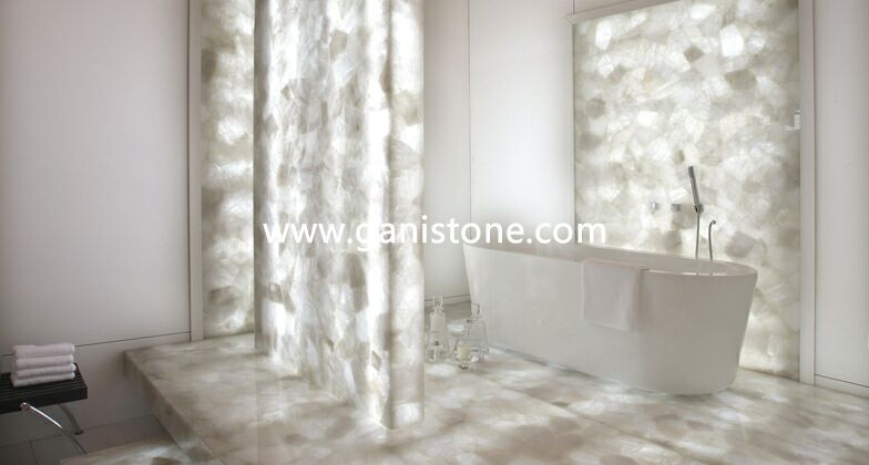 • Product description: Natural Crystal Quartz is carefully cut and pieced together by hand with natural or coating finish on surfaces which is a good choice for luxury villa and hospitality decoration.