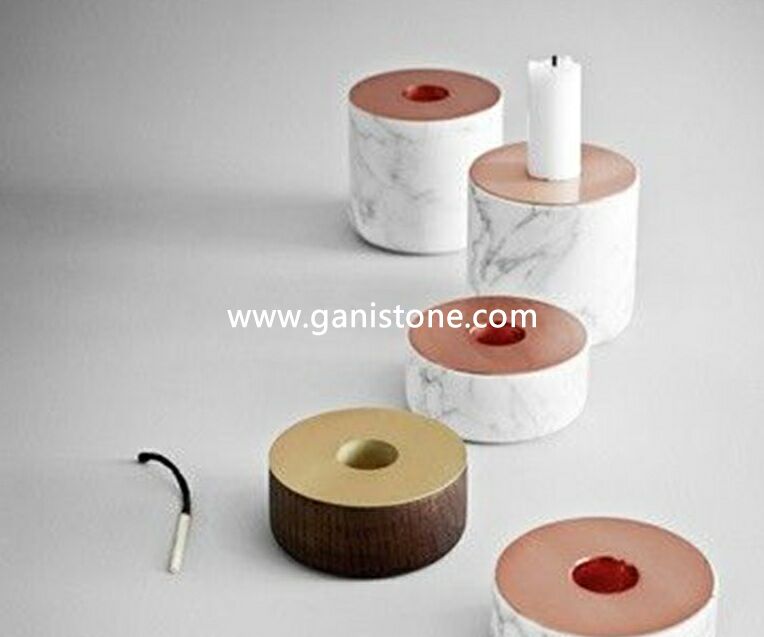 Home Decoration Natural Carrara white marble Stone Candle Jar Container Cup With Lids