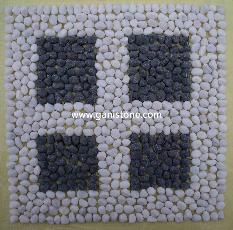 • Product description: Pebble tiles from Gani Stone feature smooth polished stones mounted to a flexible mesh backing for easy installation.