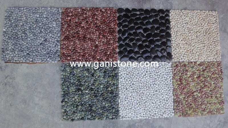 We have mirror polished pebble tile,  sliced/flat cut pebble tile,  standing/stacked pebble tile,  flat pebble tile and pebble border tile, etc..