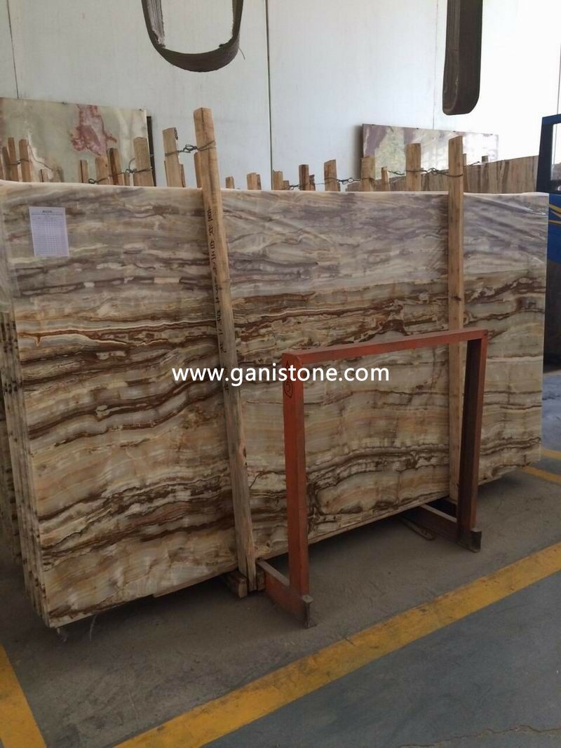 Onyx, a form of quartz, is one of the more popular precious gemstone materials. Gani Onyx has naturally beautiful translucence and line of contrasting colors running throughout which defines the unique color characteristics of the stone. Onyx colors are soft, opulent, and almost fragile in nature. Onyx tile is truly a premium surface material. Onyx tiles require some care, but with a little maintenance you can keep them looking brand new for years. If you are looking for something distinctive, consider onyx tile for your flooring surfaces. Gani Stone Onyx can be applied to flooring,wall fa?ade, vanity tops, columns, carvings, stairs, wall ledge stone veneer, water jet medallion, mosaic, window sills, etc..