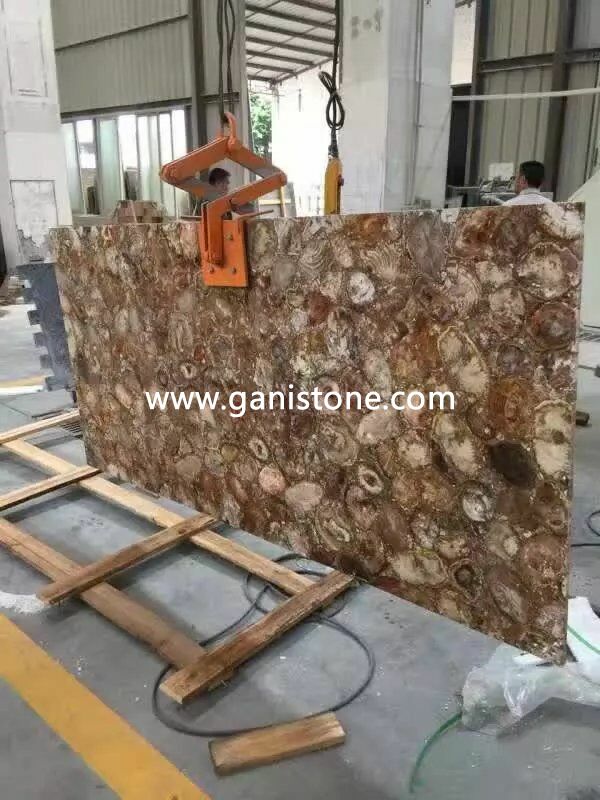 We have a wide range of semi precious stone types for selection, such as agate, aventurine, cat’s eye, chrysanthemum, labradorite, lapis lazuli, malachite, quartz, ox horn, petrified wood, sapphire, solalite blue jasper, tiger eye blue yellow, violet fluorite, zebra stone, red coral stone, amethyst, blue astroies, golden star gemstone, iron tiger eye, red jasper, turquoise, etc.. Each semi-precious stone is individually cut and bound together with an epoxy resin to create not only stunning slabs, but true works of art. They’re ideal for high end project and our clients love to use then for decorating luxury hospitality, villa, commercial project, etc..