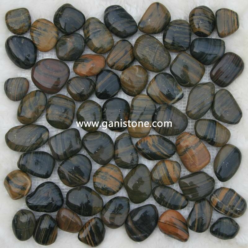 We have mirror polished pebble tile,  sliced/flat cut pebble tile,  standing/stacked pebble tile,  flat pebble tile and pebble border tile, etc..