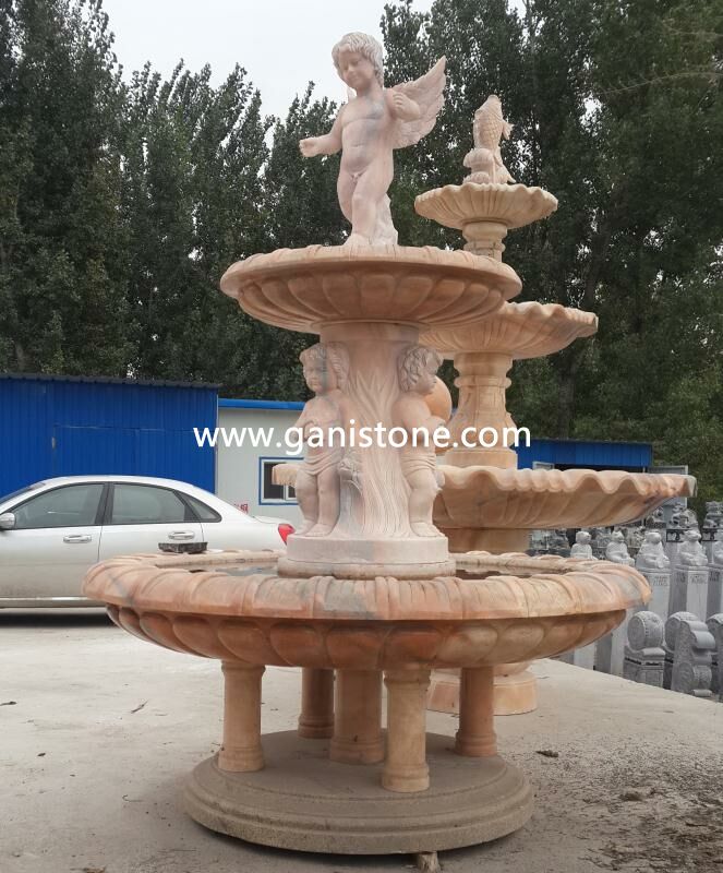 Gani Stone make a wide variety of marble fountains and granite fountains including large tiered fountains, basin fountains, wall fountains, bubbling fountains and spitting fountains. Water fountain is a kinds of artificial landscape, which can be placed both home garden and public place. Carved by talented workers, each stone fountain is actually a piece of art. It can add a look of elegance for your garden, hotel, plaza, etc.. Granite and marble fountains have the two obvious functions: one is wet the surrounding air, reduce the dust. Another is that the jet water can produce negative oxygen ions, which is good for our health.