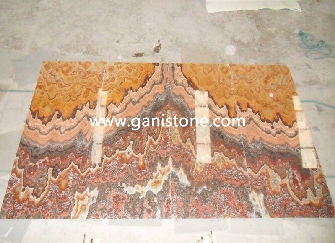 Onyx, a form of quartz, is one of the more popular precious gemstone materials. Gani Onyx has naturally beautiful translucence and line of contrasting colors running throughout which defines the unique color characteristics of the stone. Onyx colors are soft, opulent, and almost fragile in nature. Onyx tile is truly a premium surface material. Onyx tiles require some care, but with a little maintenance you can keep them looking brand new for years. If you are looking for something distinctive, consider onyx tile for your flooring surfaces. Gani Stone Onyx can be applied to flooring,wall fa?ade, vanity tops, columns, carvings, stairs, wall ledge stone veneer, water jet medallion, mosaic, window sills, etc..
