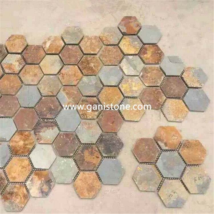 Rusty Slate Hexagon Mosaic Tile