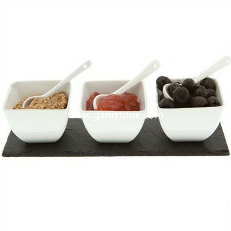 • Product description: Slate tableware and crafts are becoming more and more popular in Europe and USA. They’re made of 100% natural stone black slate which is heat-resistance, easy to clean and also a piece of art.