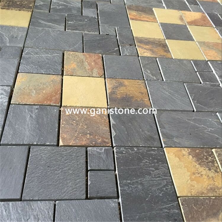 • Product description: Gani Stone slate mosaic is a collection of slate stone pieces that have been arranged in some sort of pleasing pattern. Mosaics are common as backsplashes, as walkways, and as flooring.