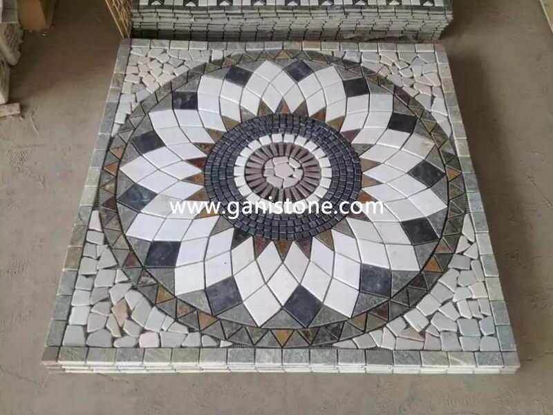 Gani Stone slate mosaic is a collection of slate stone pieces that have been arranged in some sort of pleasing pattern. Pieces are usually chosen based on their size and color, then inlaid with each other to create a certain design. Mosaics are common as backsplashes, as walkways, and as flooring.