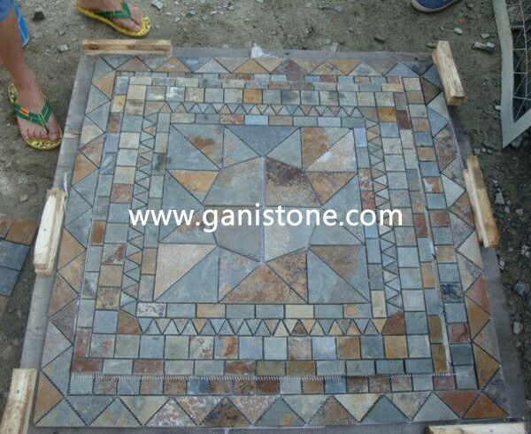 Gani Stone slate mosaic is a collection of slate stone pieces that have been arranged in some sort of pleasing pattern. Pieces are usually chosen based on their size and color, then inlaid with each other to create a certain design. Mosaics are common as backsplashes, as walkways, and as flooring.