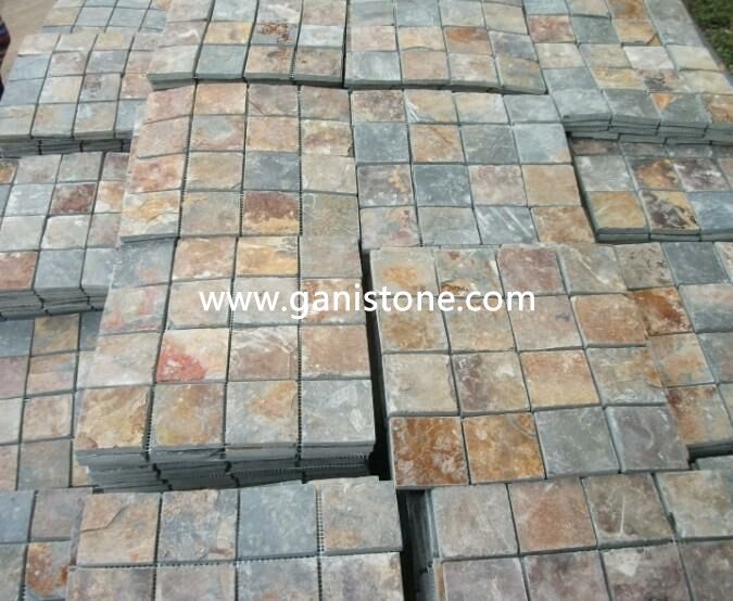 • Product description: Gani Stone slate mosaic is a collection of slate stone pieces that have been arranged in some sort of pleasing pattern. Mosaics are common as backsplashes, as walkways, and as flooring.