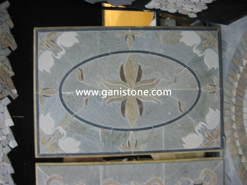Gani Stone slate mosaic is a collection of slate stone pieces that have been arranged in some sort of pleasing pattern. Pieces are usually chosen based on their size and color, then inlaid with each other to create a certain design. Mosaics are common as backsplashes, as walkways, and as flooring.