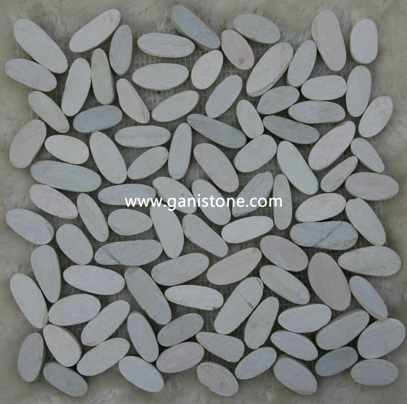We have mirror polished pebble tile,  sliced/flat cut pebble tile,  standing/stacked pebble tile,  flat pebble tile and pebble border tile, etc..