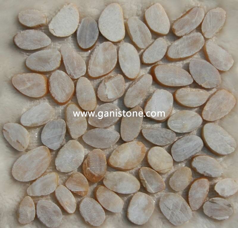• Sliced Flat River Stone Pebble Mosaic Tile
