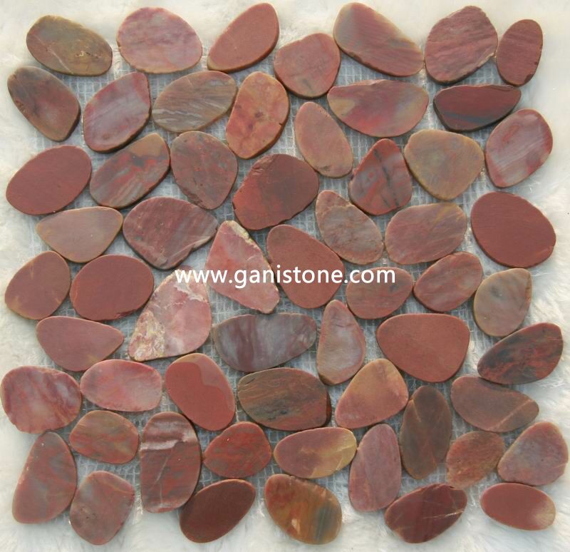 We have mirror polished pebble tile,  sliced/flat cut pebble tile,  standing/stacked pebble tile,  flat pebble tile and pebble border tile, etc..