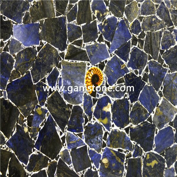 We have a wide range of semi precious stone types for selection, such as agate, aventurine, cat’s eye, chrysanthemum, labradorite, lapis lazuli, malachite, quartz, ox horn, petrified wood, sapphire, solalite blue jasper, tiger eye blue yellow, violet fluorite, zebra stone, red coral stone, amethyst, blue astroies, golden star gemstone, iron tiger eye, red jasper, turquoise, etc.. Each semi-precious stone is individually cut and bound together with an epoxy resin to create not only stunning slabs, but true works of art. They’re ideal for high end project and our clients love to use then for decorating luxury hospitality, villa, commercial project, etc..
