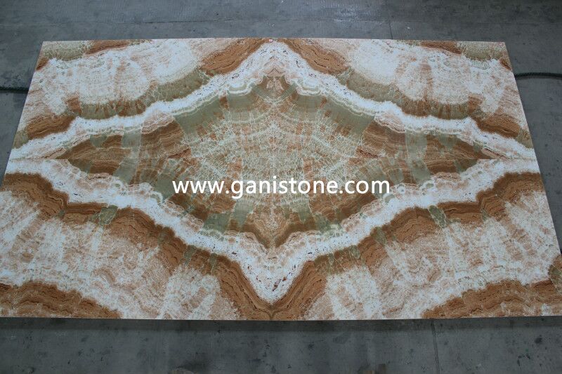 Onyx, a form of quartz, is one of the more popular precious gemstone materials. Gani Onyx has naturally beautiful translucence and line of contrasting colors running throughout which defines the unique color characteristics of the stone. Onyx colors are soft, opulent, and almost fragile in nature. Onyx tile is truly a premium surface material. Onyx tiles require some care, but with a little maintenance you can keep them looking brand new for years. If you are looking for something distinctive, consider onyx tile for your flooring surfaces. Gani Stone Onyx can be applied to flooring,wall fa?ade, vanity tops, columns, carvings, stairs, wall ledge stone veneer, water jet medallion, mosaic, window sills, etc..