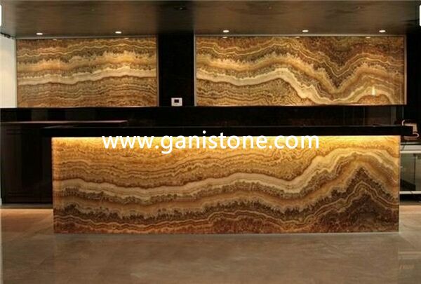 Onyx, a form of quartz, is one of the more popular precious gemstone materials. Gani Onyx has naturally beautiful translucence and line of contrasting colors running throughout which defines the unique color characteristics of the stone. Onyx colors are soft, opulent, and almost fragile in nature. Onyx tile is truly a premium surface material. Onyx tiles require some care, but with a little maintenance you can keep them looking brand new for years. If you are looking for something distinctive, consider onyx tile for your flooring surfaces. Gani Stone Onyx can be applied to flooring,wall fa?ade, vanity tops, columns, carvings, stairs, wall ledge stone veneer, water jet medallion, mosaic, window sills, etc..