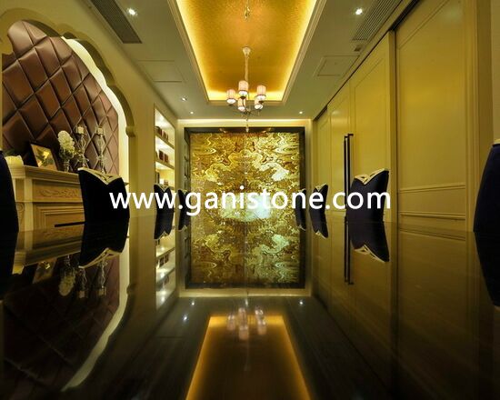 Onyx, a form of quartz, is one of the more popular precious gemstone materials. Gani Onyx has naturally beautiful translucence and line of contrasting colors running throughout which defines the unique color characteristics of the stone. Onyx colors are soft, opulent, and almost fragile in nature. Onyx tile is truly a premium surface material. Onyx tiles require some care, but with a little maintenance you can keep them looking brand new for years. If you are looking for something distinctive, consider onyx tile for your flooring surfaces. Gani Stone Onyx can be applied to flooring,wall fa?ade, vanity tops, columns, carvings, stairs, wall ledge stone veneer, water jet medallion, mosaic, window sills, etc..