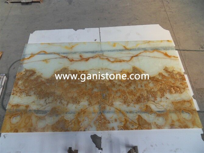 Onyx, a form of quartz, is one of the more popular precious gemstone materials. Gani Onyx has naturally beautiful translucence and line of contrasting colors running throughout which defines the unique color characteristics of the stone. Onyx colors are soft, opulent, and almost fragile in nature. Onyx tile is truly a premium surface material. Onyx tiles require some care, but with a little maintenance you can keep them looking brand new for years. If you are looking for something distinctive, consider onyx tile for your flooring surfaces. Gani Stone Onyx can be applied to flooring,wall fa?ade, vanity tops, columns, carvings, stairs, wall ledge stone veneer, water jet medallion, mosaic, window sills, etc..