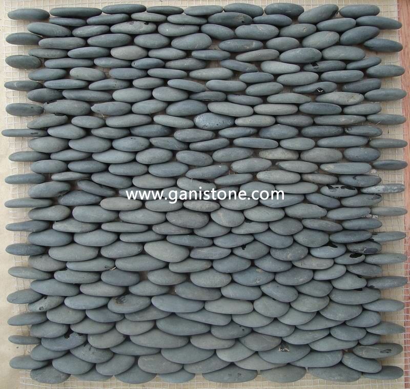 We have mirror polished pebble tile,  sliced/flat cut pebble tile,  standing/stacked pebble tile,  flat pebble tile and pebble border tile, etc..