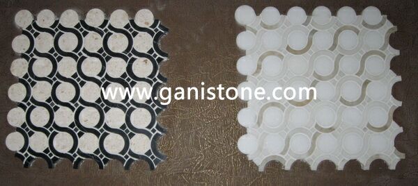 • Product description: Waterjet stone mosaic tiles are made by cutting natural stone slabs with a waterjet, assembled as tight as possible on a solid backer. Stones are polished and sealed, and you can see it like the wallp