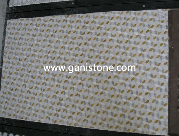 • Product description: Waterjet stone mosaic tiles are made by cutting natural stone slabs with a waterjet, assembled as tight as possible on a solid backer. Stones are polished and sealed, and you can see it like the wallp