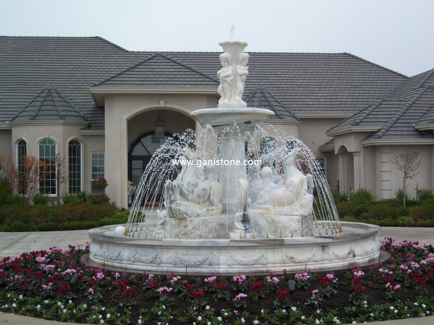 Gani Stone make a wide variety of marble fountains and granite fountains including large tiered fountains, basin fountains, wall fountains, bubbling fountains and spitting fountains. Water fountain is a kinds of artificial landscape, which can be placed both home garden and public place. Carved by talented workers, each stone fountain is actually a piece of art. It can add a look of elegance for your garden, hotel, plaza, etc.. Granite and marble fountains have the two obvious functions: one is wet the surrounding air, reduce the dust. Another is that the jet water can produce negative oxygen ions, which is good for our health.