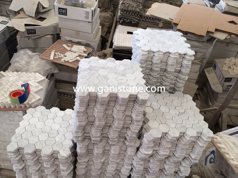 White Marble Mosaic Hexagon Wall TilesWhite Marble Mosaic Hexagon Wall Tiles