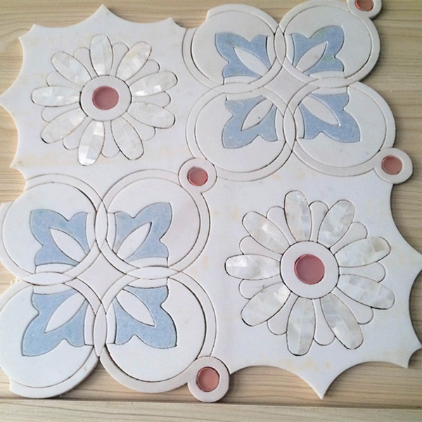 • Product description: Waterjet stone mosaic tiles are made by cutting natural stone slabs with a waterjet, assembled as tight as possible on a solid backer. Stones are polished and sealed, and you can see it like the wallp