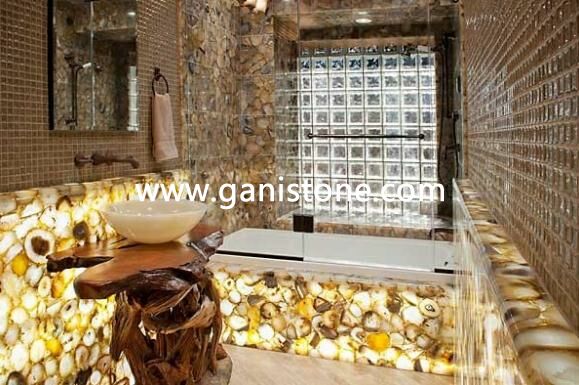 Yellow Agate Backlit Bathroom DesignYellow Agate Backlit Bathroom Design