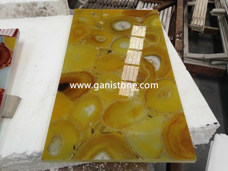 • Product description: Yellow Agate is carefully cut and pieced together by hand with natural or coating finish on surfaces which is a good choice for luxury villa and hospitality decoration.