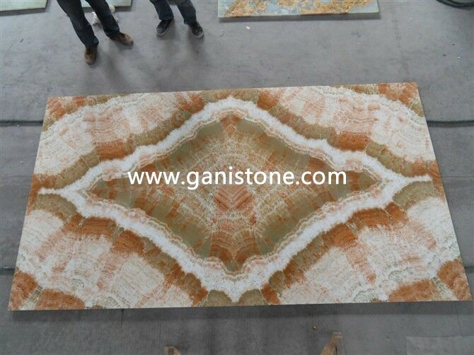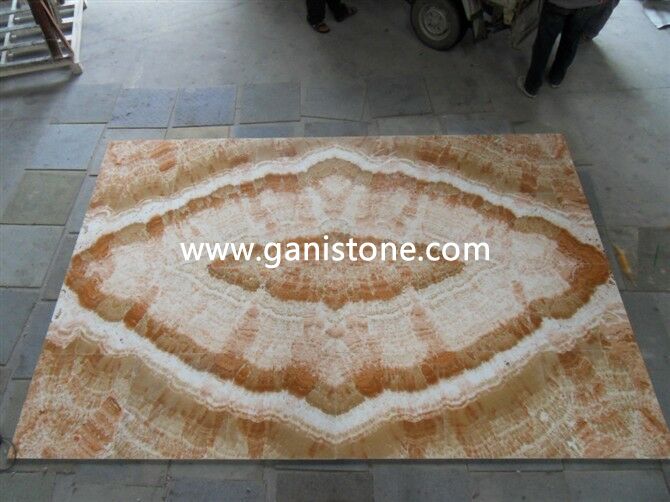 Onyx, a form of quartz, is one of the more popular precious gemstone materials. Gani Onyx has naturally beautiful translucence and line of contrasting colors running throughout which defines the unique color characteristics of the stone. Onyx colors are soft, opulent, and almost fragile in nature. Onyx tile is truly a premium surface material. Onyx tiles require some care, but with a little maintenance you can keep them looking brand new for years. If you are looking for something distinctive, consider onyx tile for your flooring surfaces. Gani Stone Onyx can be applied to flooring,wall fa?ade, vanity tops, columns, carvings, stairs, wall ledge stone veneer, water jet medallion, mosaic, window sills, etc..