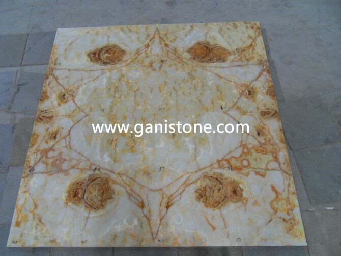 Onyx, a form of quartz, is one of the more popular precious gemstone materials. Gani Onyx has naturally beautiful translucence and line of contrasting colors running throughout which defines the unique color characteristics of the stone. Onyx colors are soft, opulent, and almost fragile in nature. Onyx tile is truly a premium surface material. Onyx tiles require some care, but with a little maintenance you can keep them looking brand new for years. If you are looking for something distinctive, consider onyx tile for your flooring surfaces. Gani Stone Onyx can be applied to flooring,wall fa?ade, vanity tops, columns, carvings, stairs, wall ledge stone veneer, water jet medallion, mosaic, window sills, etc..