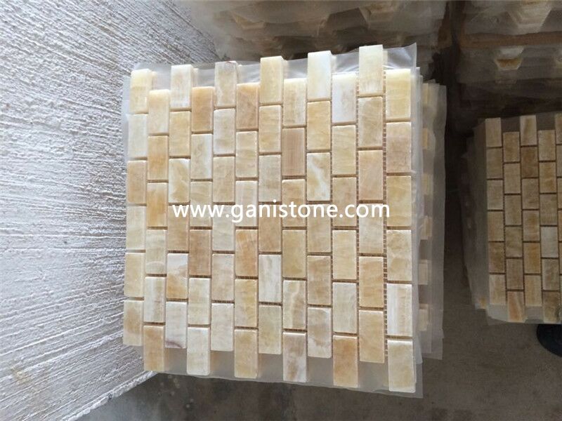 • Product description: GANI STONE Onyx mosaic is a collection of onyx pieces that have been arranged in some sort of pleasing pattern.