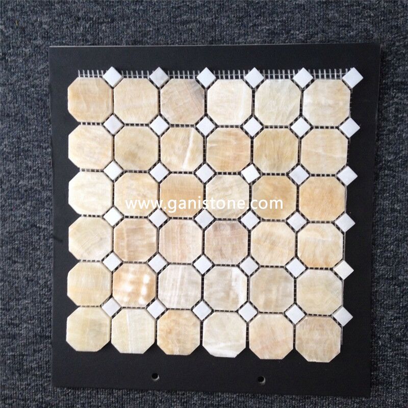 • Yellow Onyx Octagonal Mosaic with White Dot