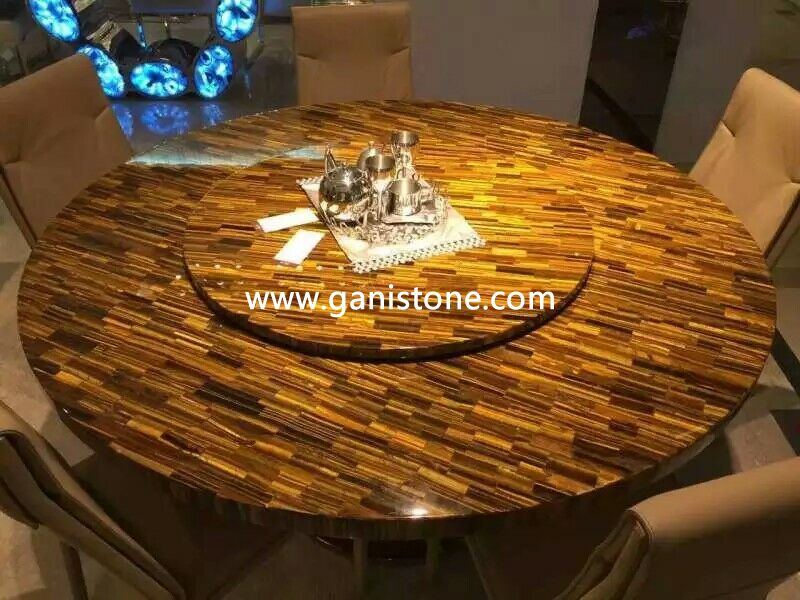 Yellow Tiger Eye Lazy Susan Table for Luxury Restaurant