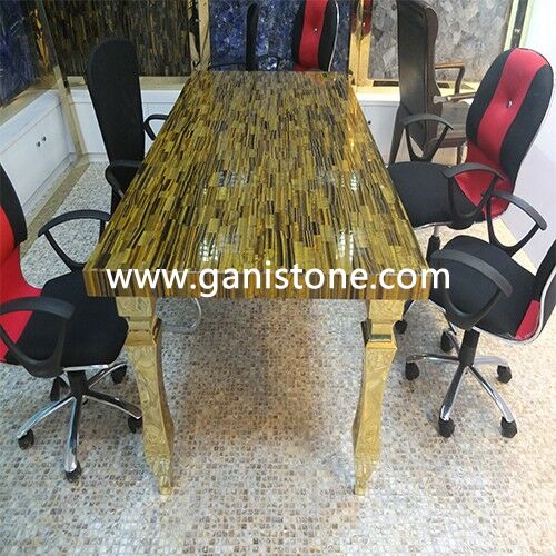 We have a wide range of semi precious stone types for selection, such as agate, aventurine, cat’s eye, chrysanthemum, labradorite, lapis lazuli, malachite, quartz, ox horn, petrified wood, sapphire, solalite blue jasper, tiger eye blue yellow, violet fluorite, zebra stone, red coral stone, amethyst, blue astroies, golden star gemstone, iron tiger eye, red jasper, turquoise, etc.. Each semi-precious stone is individually cut and bound together with an epoxy resin to create not only stunning slabs, but true works of art. They’re ideal for high end project and our clients love to use then for decorating luxury hospitality, villa, commercial project, etc..