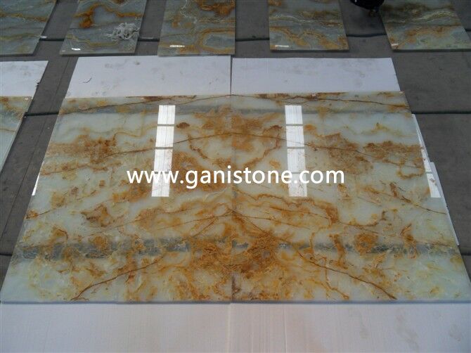 Onyx, a form of quartz, is one of the more popular precious gemstone materials. Gani Onyx has naturally beautiful translucence and line of contrasting colors running throughout which defines the unique color characteristics of the stone. Onyx colors are soft, opulent, and almost fragile in nature. Onyx tile is truly a premium surface material. Onyx tiles require some care, but with a little maintenance you can keep them looking brand new for years. If you are looking for something distinctive, consider onyx tile for your flooring surfaces. Gani Stone Onyx can be applied to flooring,wall fa?ade, vanity tops, columns, carvings, stairs, wall ledge stone veneer, water jet medallion, mosaic, window sills, etc..