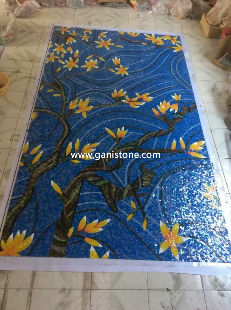 • Product description: The glass mosaic mural are hand cut by artist and it can also be customized by our client. Send us drawing or picture for the pattern you would like to achieve and we’ll make it for you.
