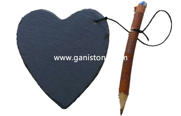 heart shape natural black slate memo with pen