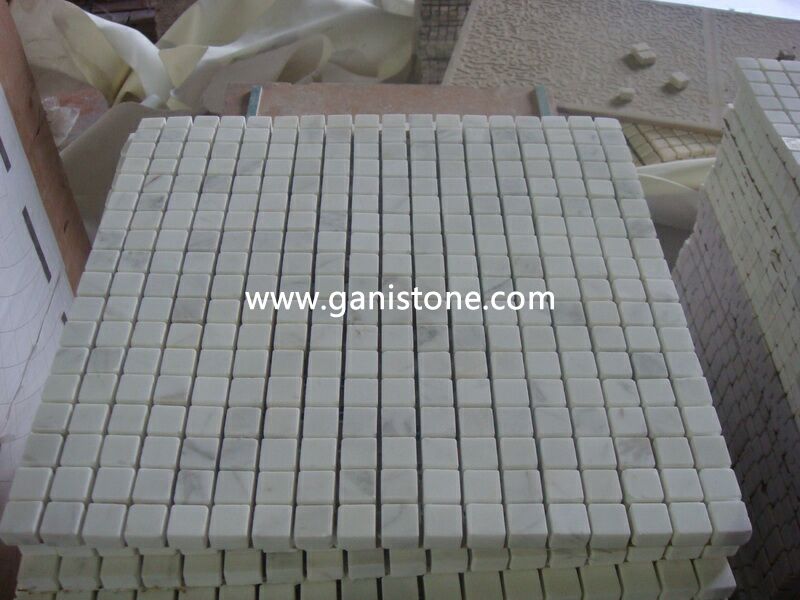 • Product description: Marble mosaic tiles are hand cut from natural marble and mounted on mesh for easy worldwide delivery.