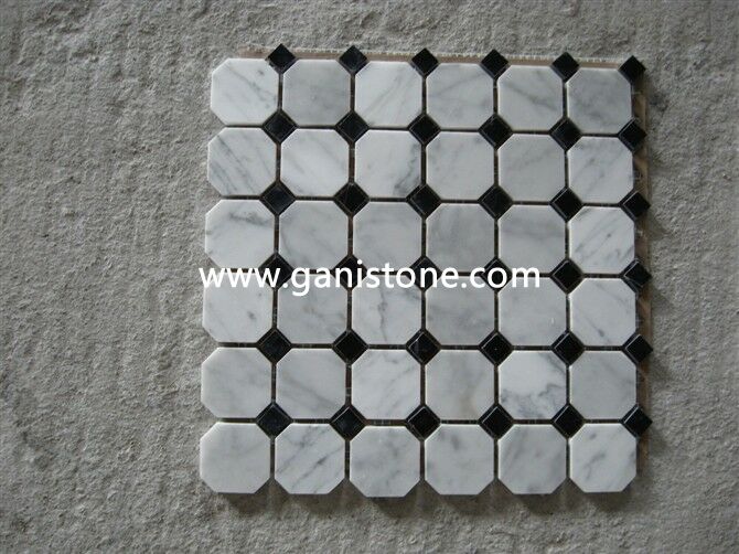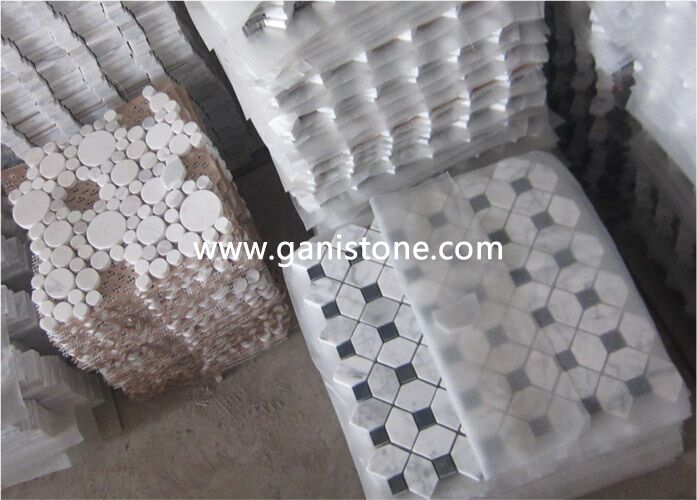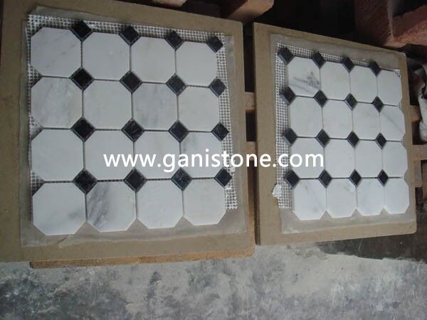 • Product description: Marble mosaic tiles are hand cut from natural marble and mounted on mesh for easy worldwide delivery.