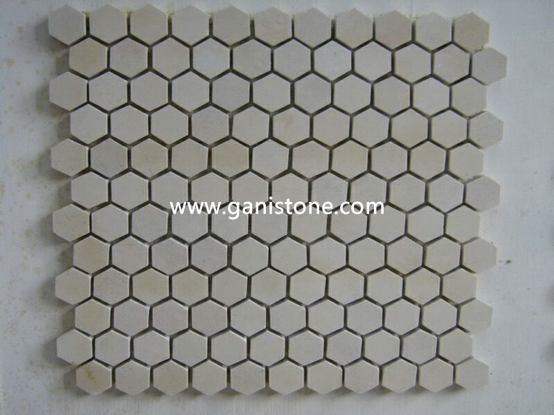 • Product description: Marble mosaic tiles are hand cut from natural marble and mounted on mesh for easy worldwide delivery.