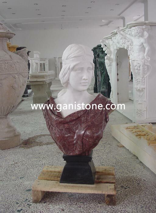 A marble bust is a head portrait of the real person, which can be a reproduction of classic sculpture or modern carving of a live person. If you are in the market for marble bust sculpture, consider Gani Stone. The state of the art class and fiber glass workshop operated by our factory in China has created hundreds of fiberglass models that have been used for precise marble sculpturing, and is ready to make the models for your custom projects. Each Gani Stone's marble bust is an artwork hand carved by our talent craftsman. Busts listed here are just some of the most popular designs. If you didn't find the bust you're looking for, you can send us photos by email, or call us for more detailed information. Recommended colors for carving marble bust: white marble for body and other colors for accessories. Finish for marble busts are available with polished and honed.