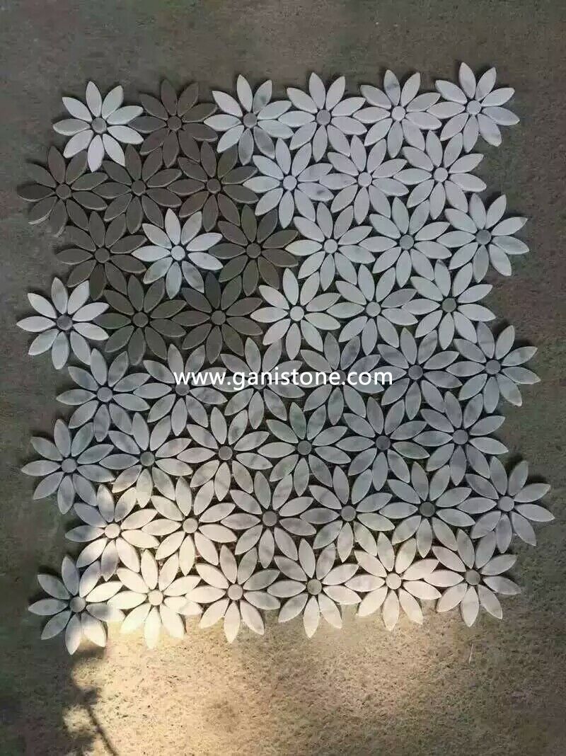 • new design water jet italian carrara white marble flower mosaic wall tile