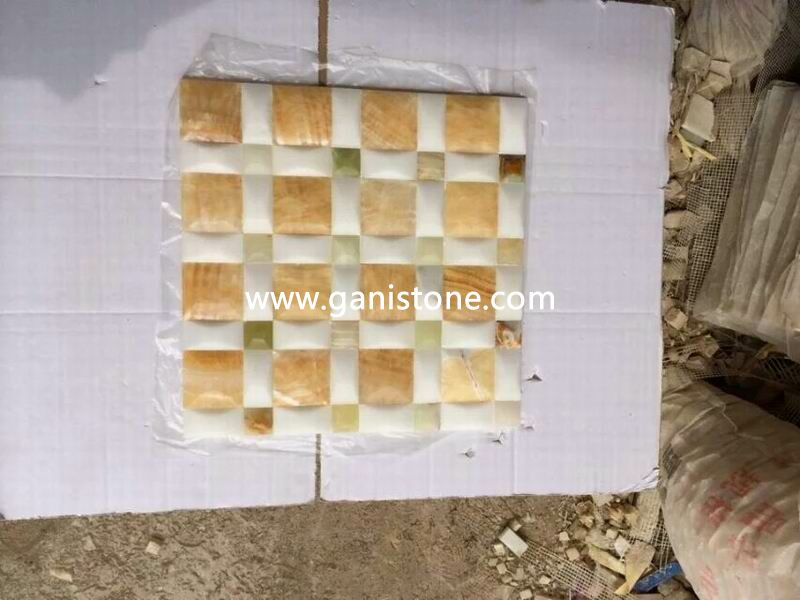 • Product description: GANI STONE Onyx mosaic is a collection of onyx pieces that have been arranged in some sort of pleasing pattern.